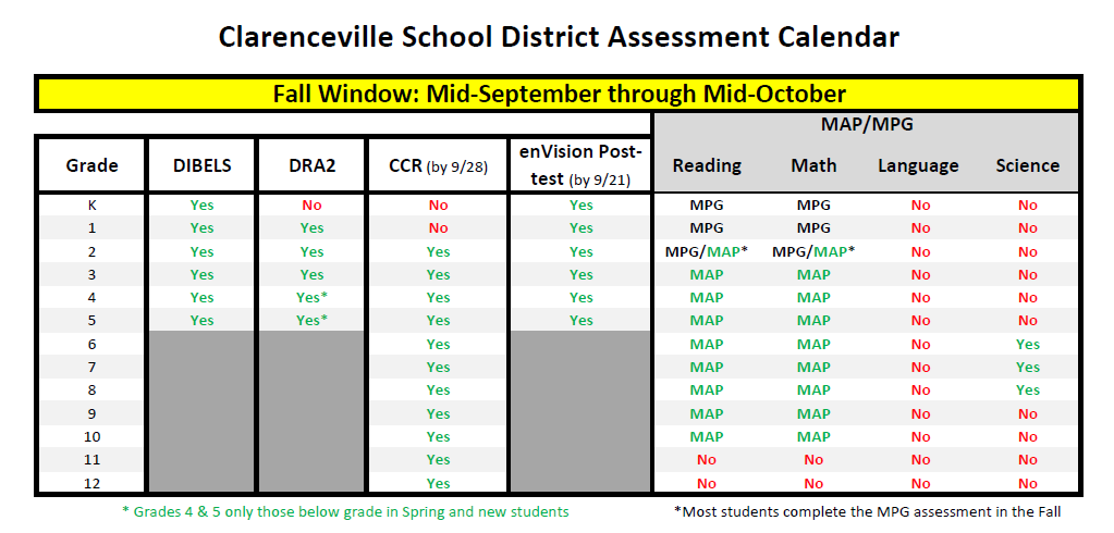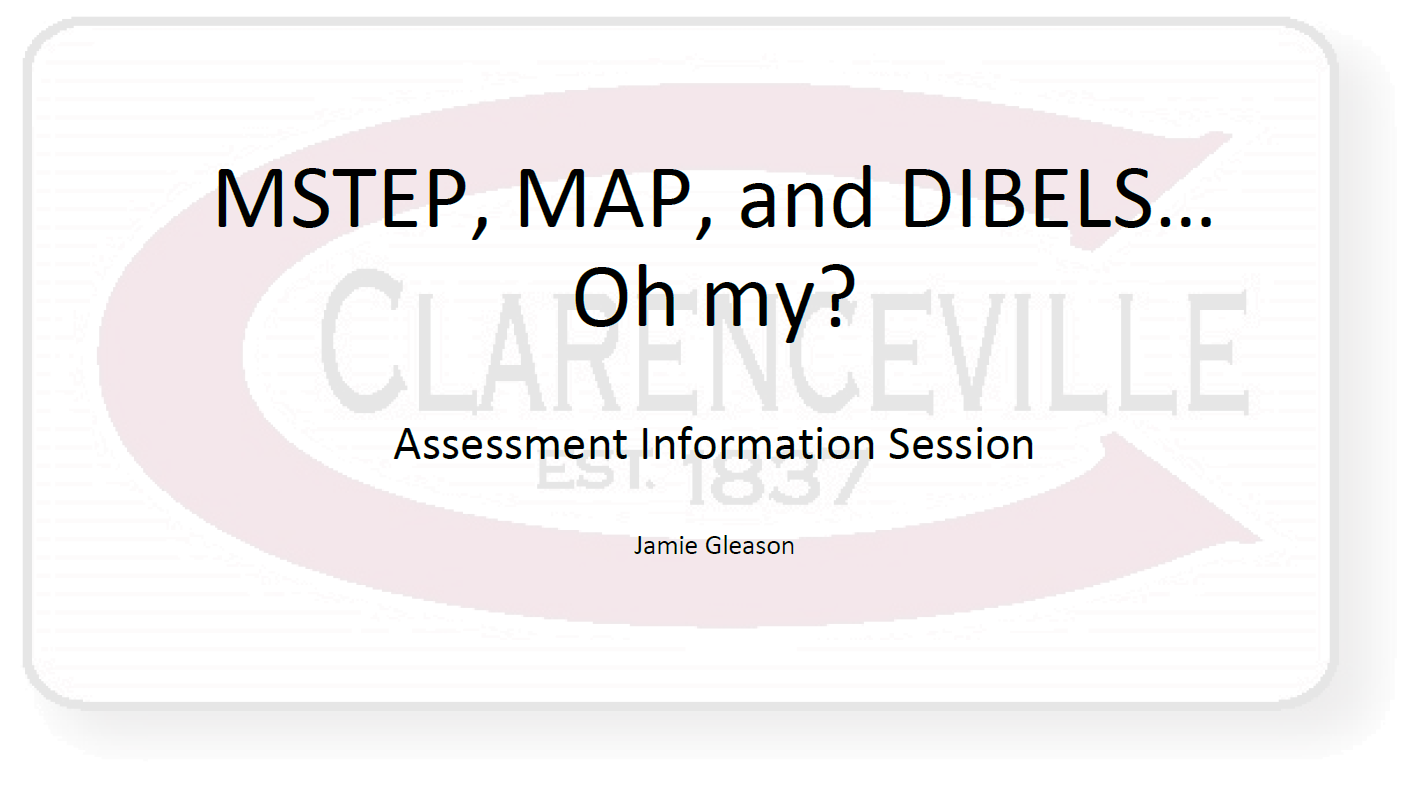 Clarenceville School District is responsible for facilitating the administration of standardized assessments and promoting the effective use of assessment data within the district. National, State and Local assessments provide educators with measurable data of student performance on academic expectations. Such information can be used to evaluate student abilities, inform classroom instruction, and improve educational programs.